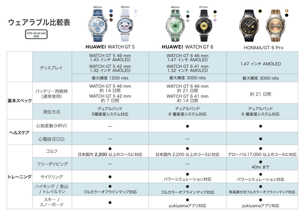 また、今回HUAWEI WATCH GT 6 Proでは、HONMAモデルも登場しています。