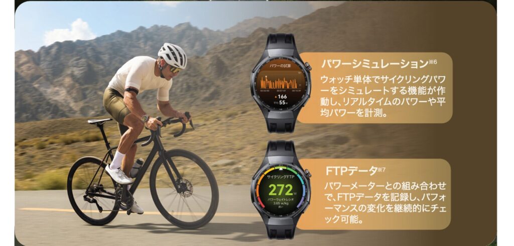HUAWEI WATCH GT 6 Proでは、サイクリングパワーのシミュレーション機能に対応しています。