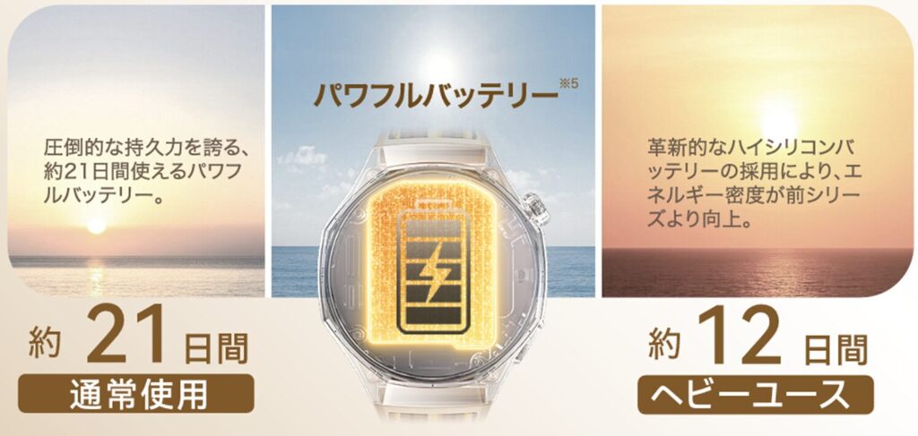 HUAWEI WATCH GT 6 Proは、驚異の電池持ちを実現しています。