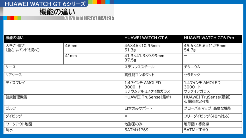 HUAWEI WATCH GT 6 ProとHUAWEI WATCH GT 6の違い