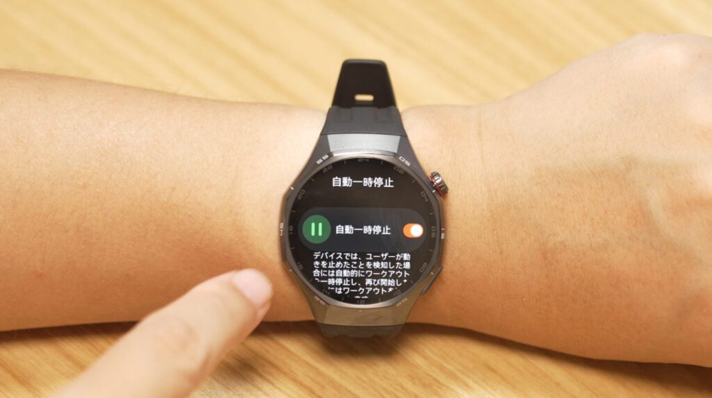 HUAWEI WATCH GT 6 Proのサイクリング機能では、走行が止まった場合に自動的にログを停止する機能も搭載されています。
