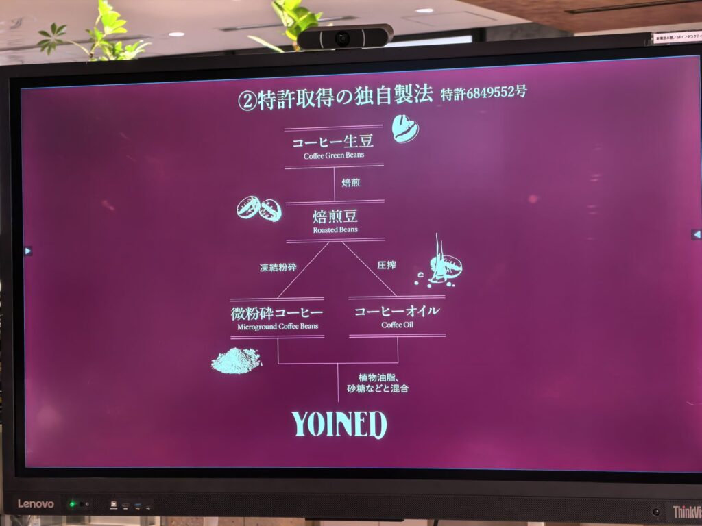 「ヨインド(YOINED)」は、通常の飲むコーヒーのように抽出するのではなく、コーヒー豆を丸ごと粉砕して作られます。