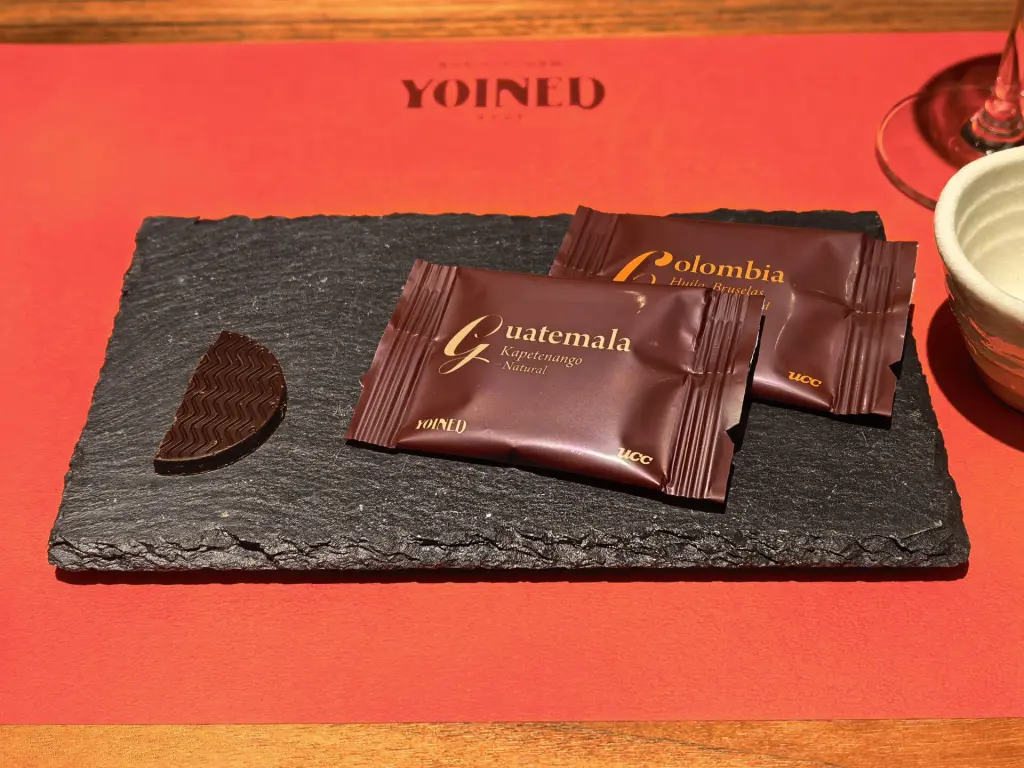 コーヒーといえば「飲む」のが普通ですが、YOINEDは板状のチョコのような形状で、口の中で広がる香り・味わいの「余韻」を楽しめる商品です。