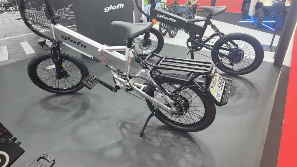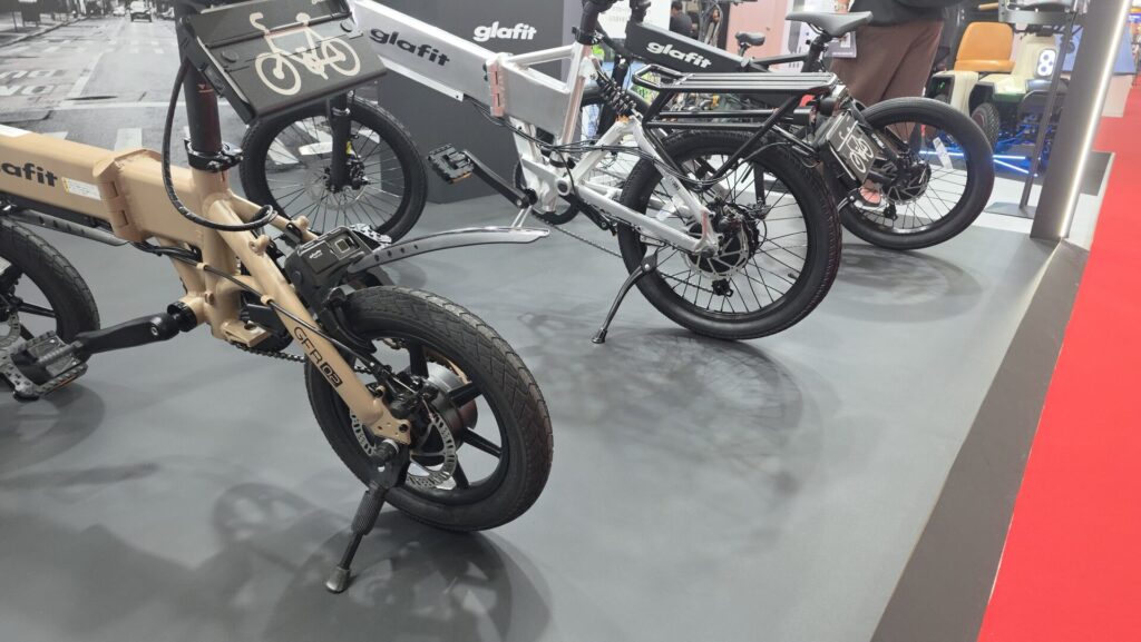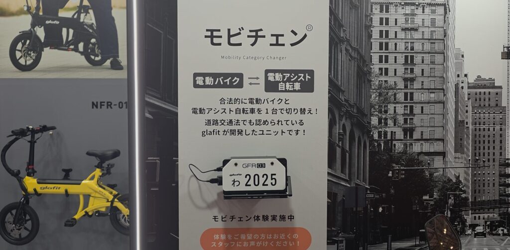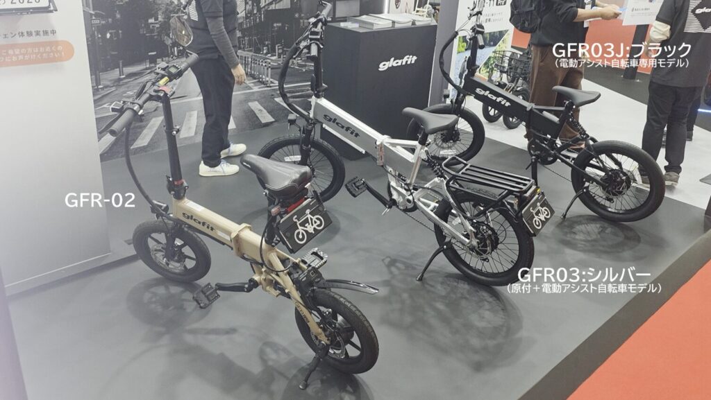 東京ビッグサイトで開催中のJapan Mobility Show 2025にて、glafitが新製品の原付と電動アシスト自転車を切り替えられるバイク「GFR-03」を展示しています。
