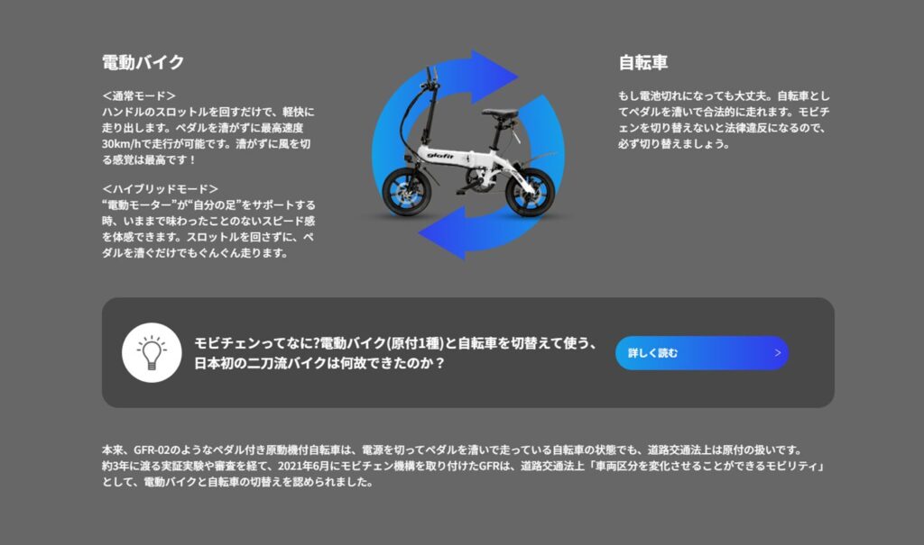 先代のGFR-02までも、原付と自転車を切り替えることはできました。