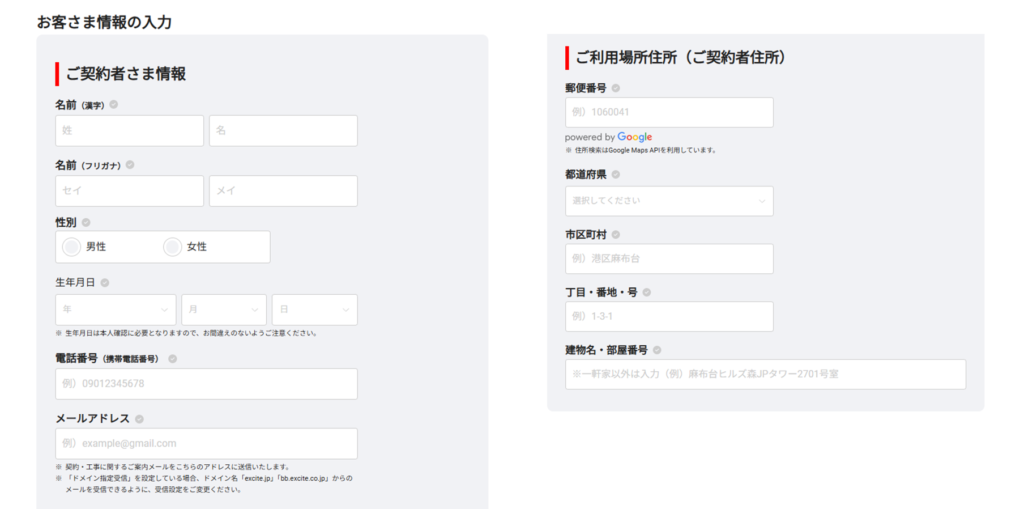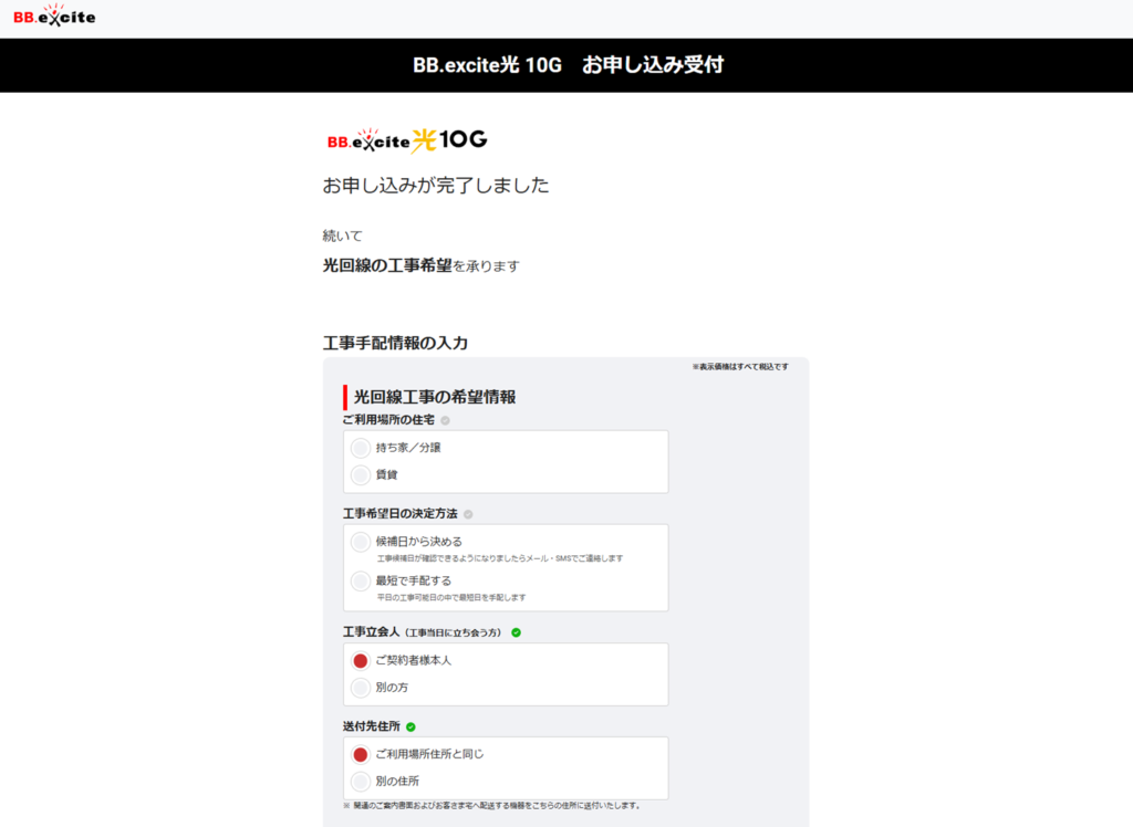 申し込みが完了したら、続いては工事手配情報を入力します。
