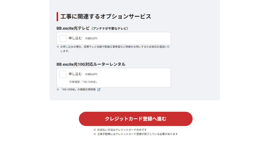 BB.excite光 10Gは、明確に「工事費0円」ですので、非常に安く利用することができます。