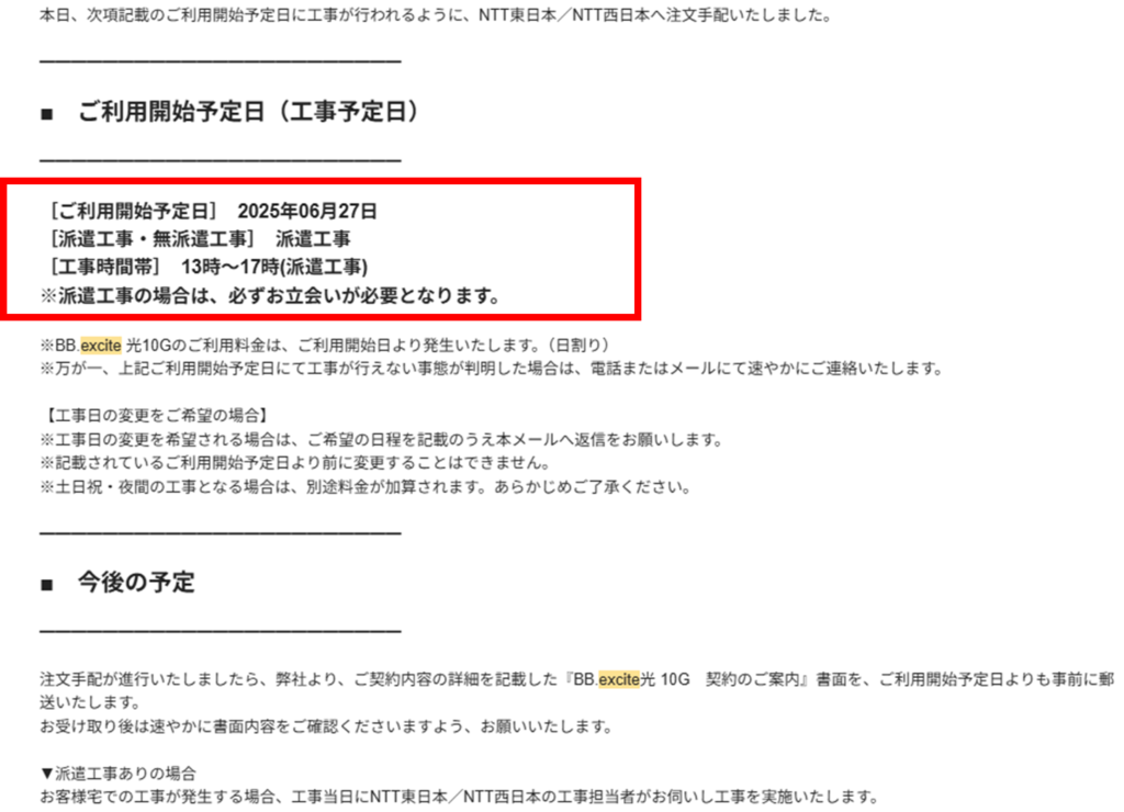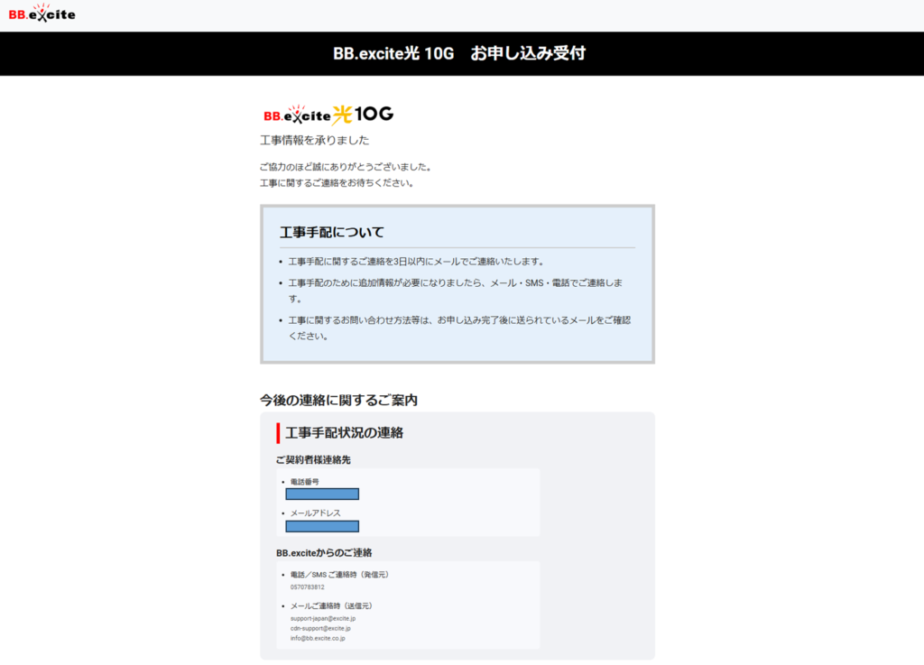 BB.excite光 10Gを申し込んでから、開通するまではかなり簡単です。