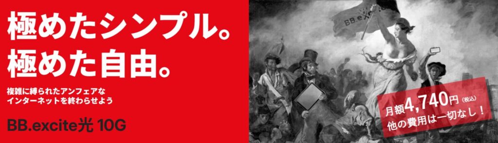 BB.excite光 10Gは、月額4,740円!業界最安水準!