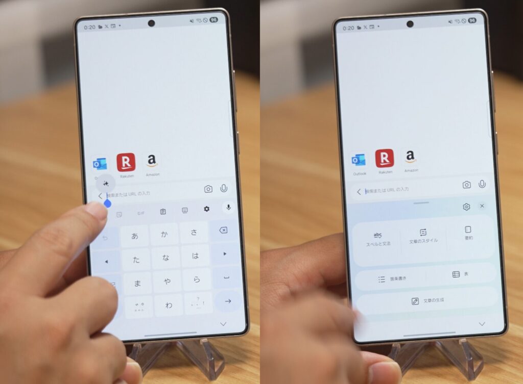 Pixelでも文章校正やスタイルの変更などはGboardから行えますが、Galaxyのほうが幅広く行える印象です。