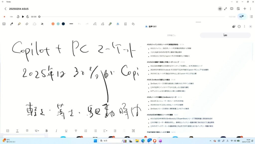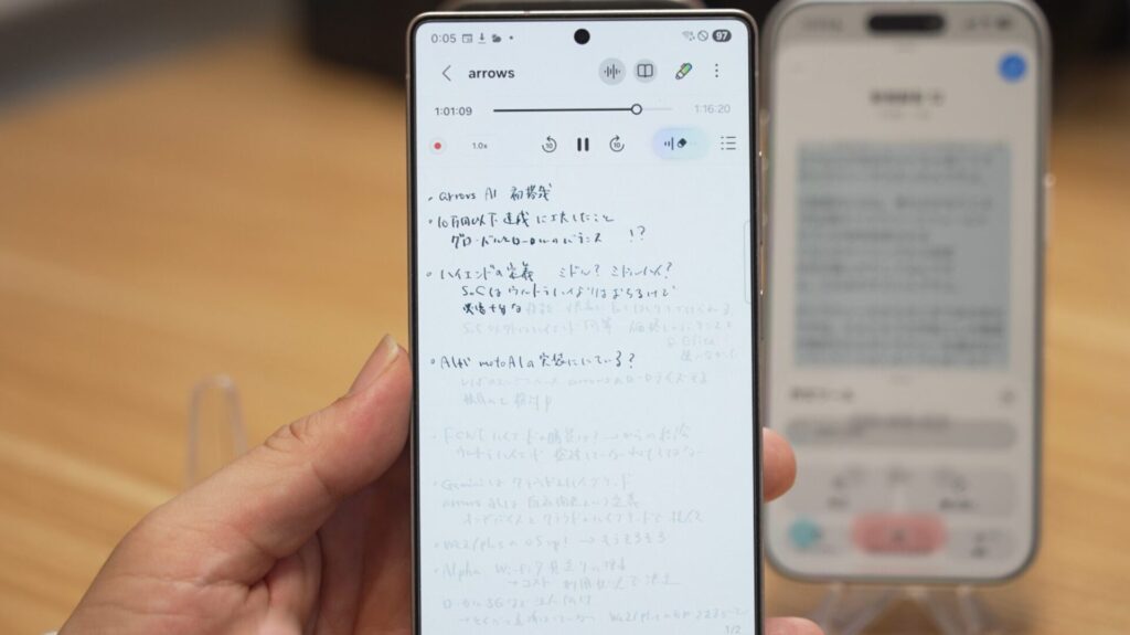 手書きメモは文字起こし出来ますし、録音しながらメモをすると、筆跡も保存してくれます。
