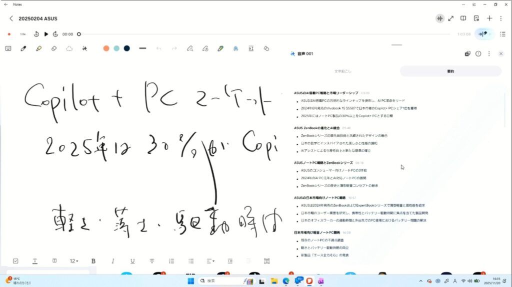一般的なSnapdragon Xシリーズ以外のPCに比べ、作業時の電池持ちがかなり良く、長時間作業ができます。