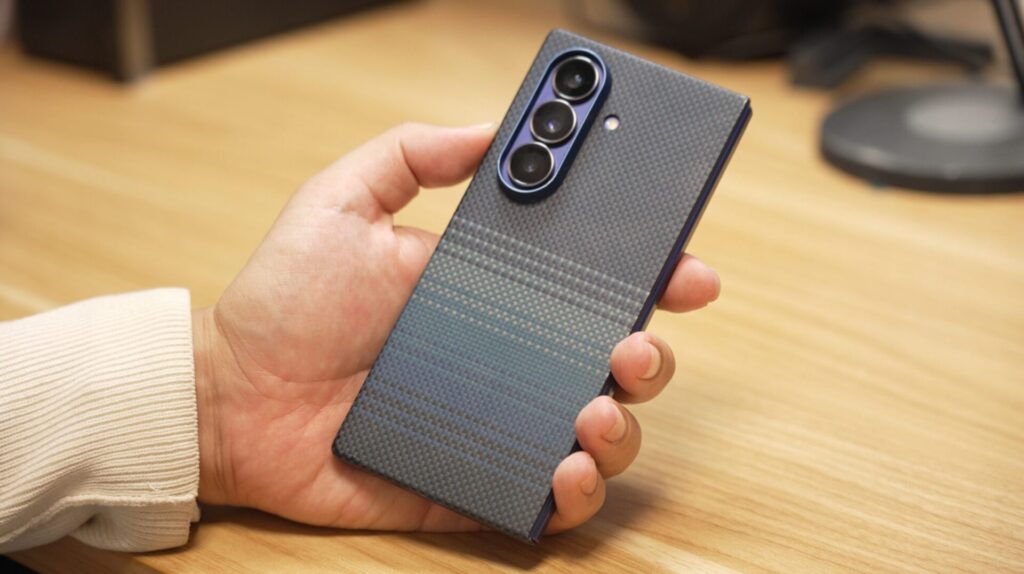 筆者がメインで使っているGalaxy Z Fold7にも、もちろんPITAKA極薄ケースを使っています。
