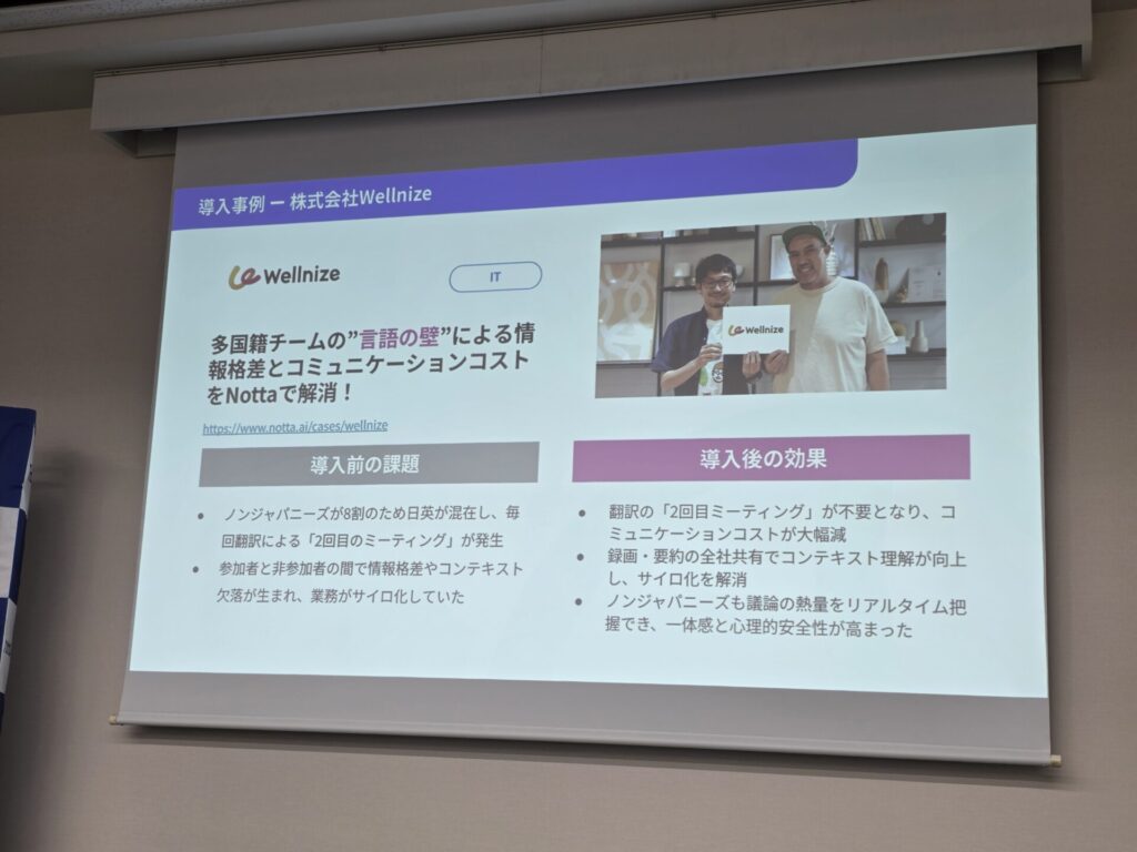 ビジネスシーンでも、営業ではお客様との会話の中でNottaを使用しニーズを拾ったり、社内で多国籍な人材を採用しミーティングも翻訳をNottaで行いながら言語の壁を取り除く、など様々な活用をされています。