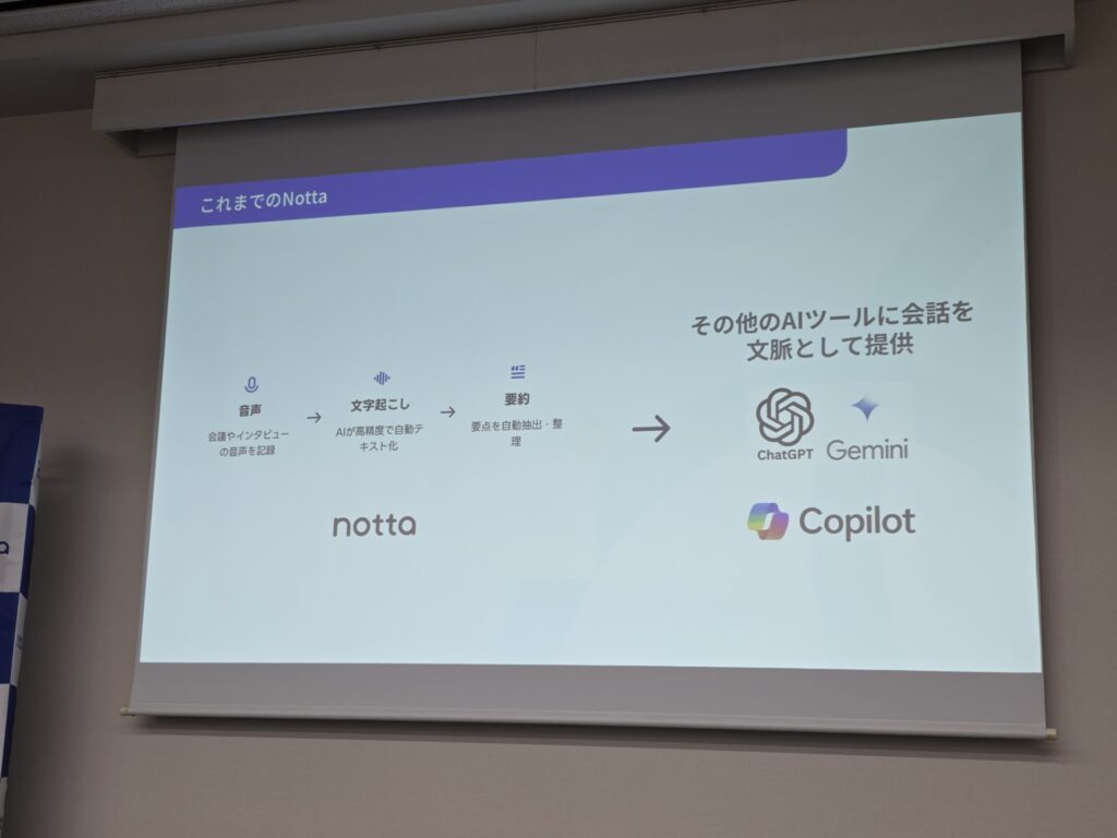 Notta Memoは非常に好評で、利用者からも多々フィードバックをいただいていて、それをもとに改善版を開発したい、とのことでした。