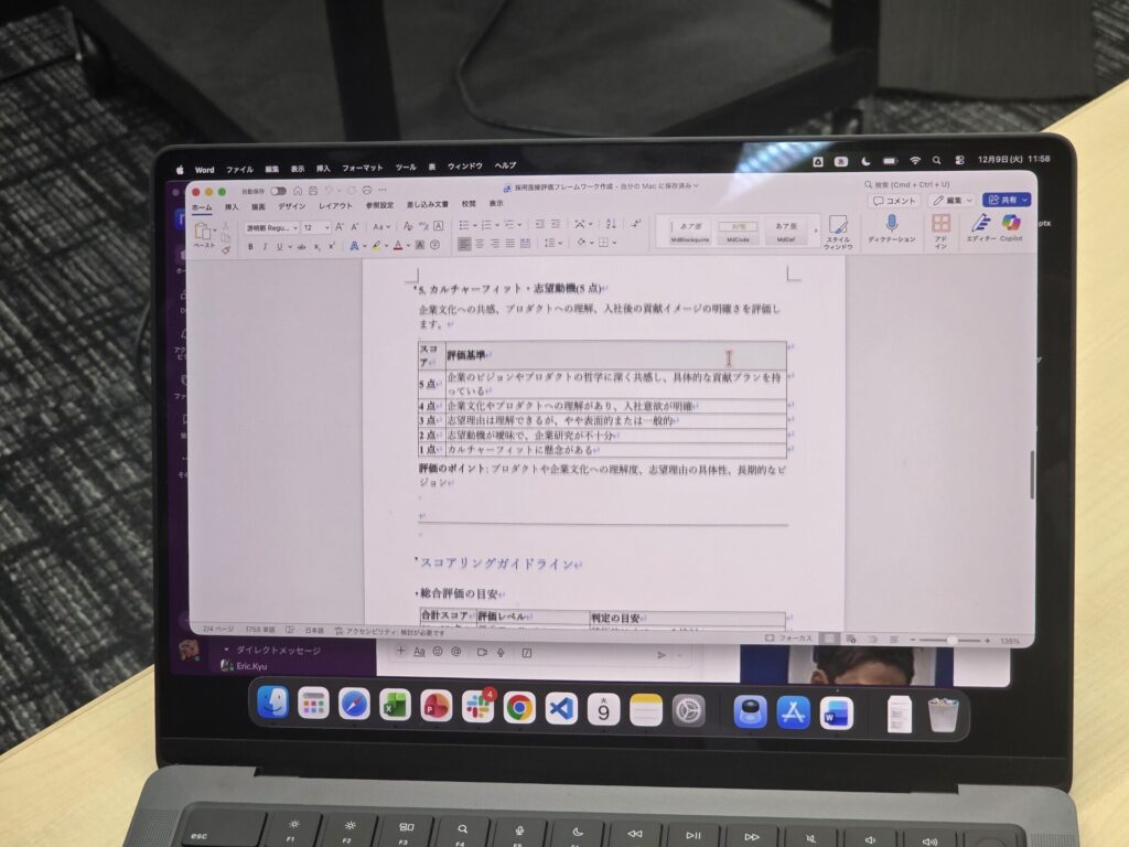 この評価基準をもとに、各面接者を評価する、といったこともできます。