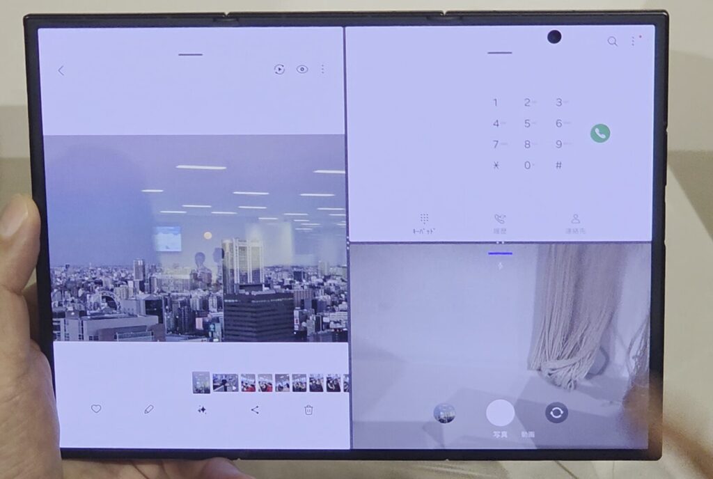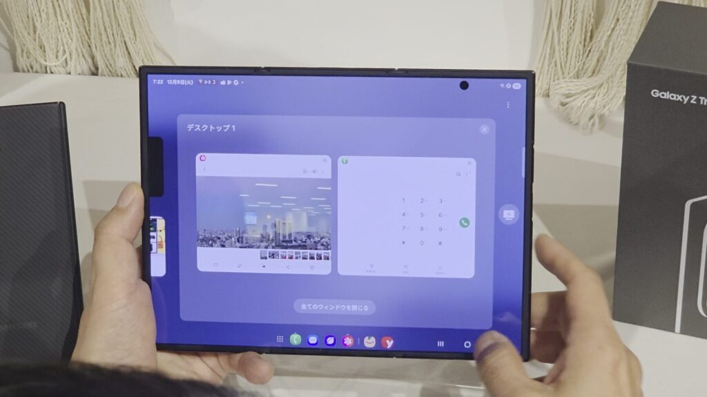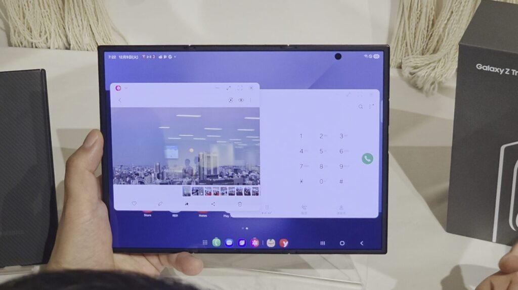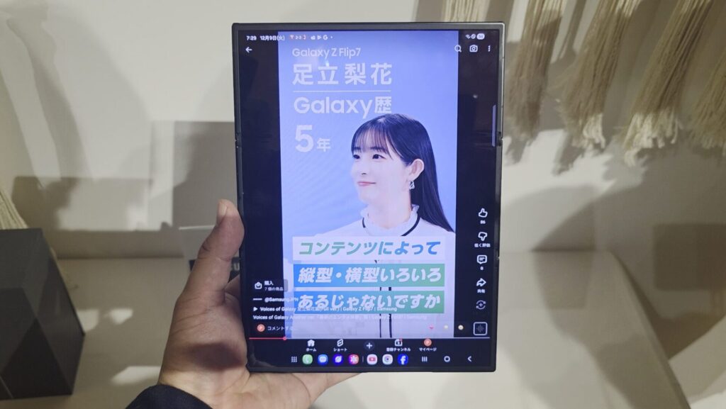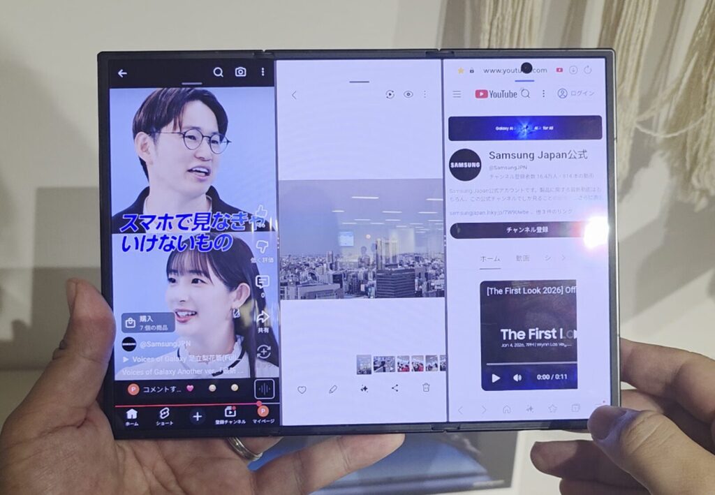 私もGalaxy Z Fold7をメインに使っていますが、Galaxy Z Fold7で使っている、たとえば自撮りのシーンはどうなるんだろう、とか、DeX(PCモード)では使い勝手どうなんだろう、マルチタスクはどれだけ使いやすいのか?など、気になることがめちゃくちゃいっぱい出てきます。