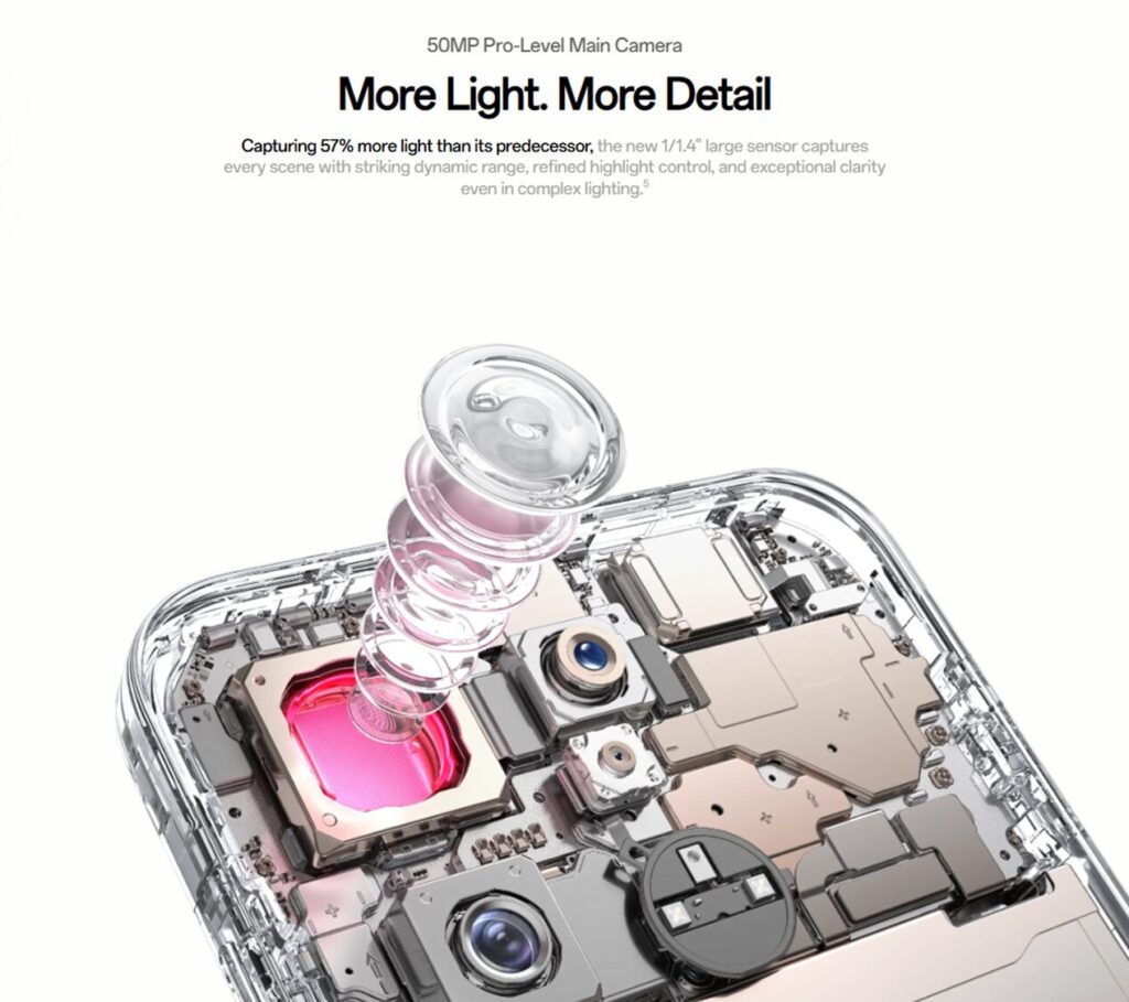 広角カメラ(23mm)は、1/1.4インチセンサー(Sony LYT-808)を搭載し、光を取り込む量は先代のOPPO Find X8と比べて57%増えています。