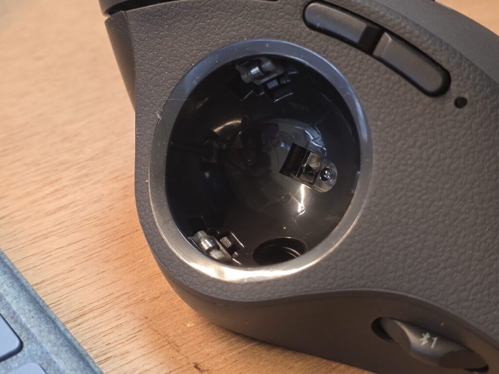 ELECOM IST Pro は、トラックボールながらボールをベアリングで受けており、非常にすべりがいいのが特徴的。