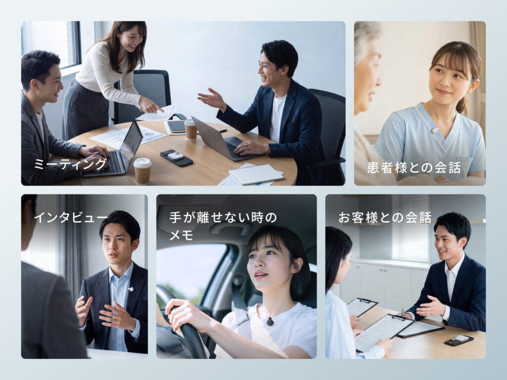 文字起こしや要約もクラウドAIを使って高精度なため、会議の議事録やお客様との商談メモとして営業・弁護士・医師などの方にも好評な、次世代のビジネスユーザーの必需品です。