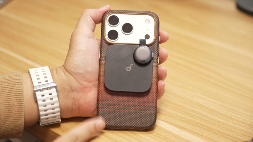 iPhoneやPixelなどのMagSafe・Qi2のマグネット充電に対応したスマホをお使いであれば、Soundcore Workをそのままスマホにくっつけられます。