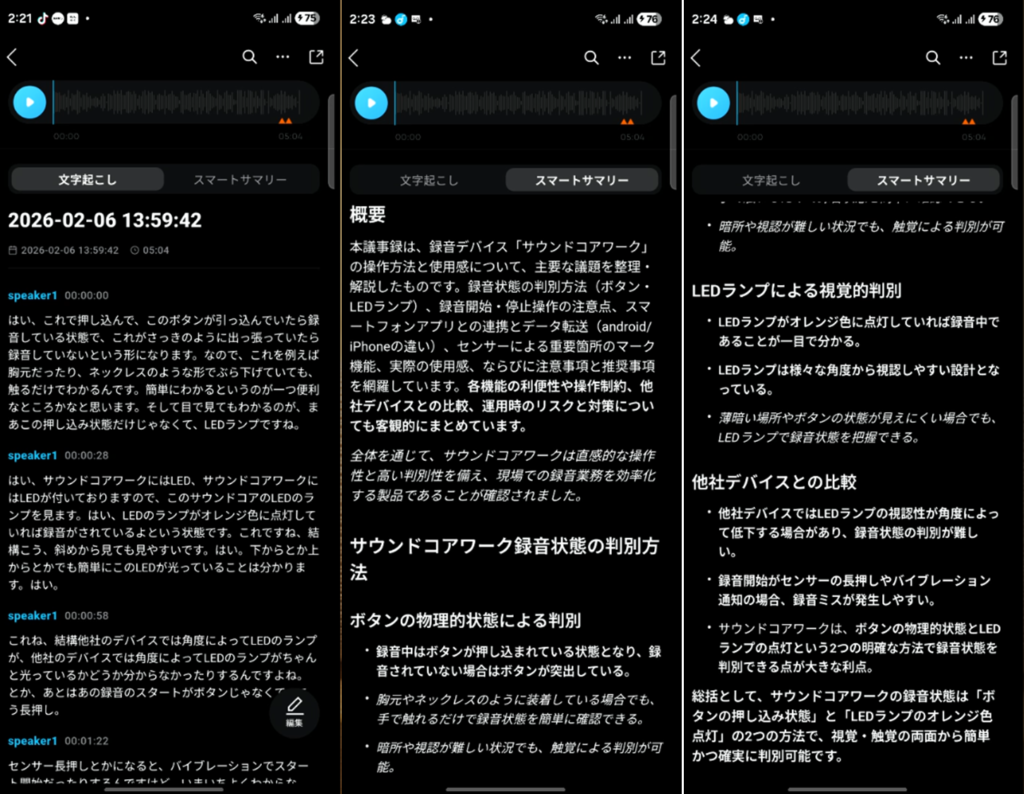スマホでも、PCでも文字起こしや要約を管理できる便利さなども非常にいいです。