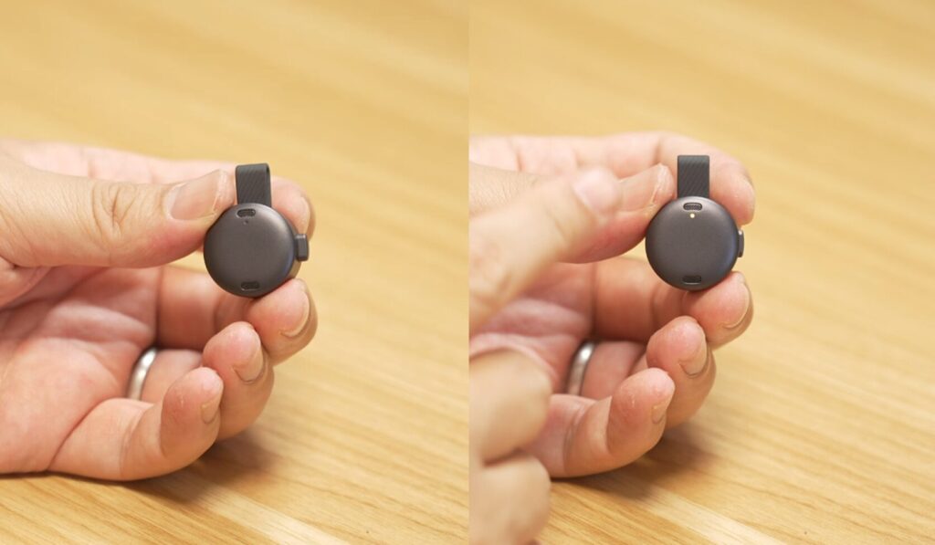 Soundcore Workで録音する際は、本体横のボタンを押し込みます。