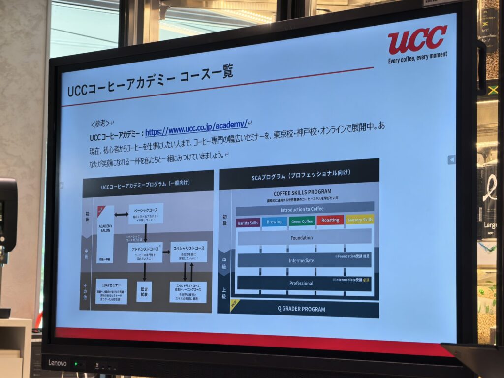 UCCコーヒーアカデミーは、東京と神戸を拠点に、プロから初心者まで幅広い層に体系的なコーヒー教育を提供しています。