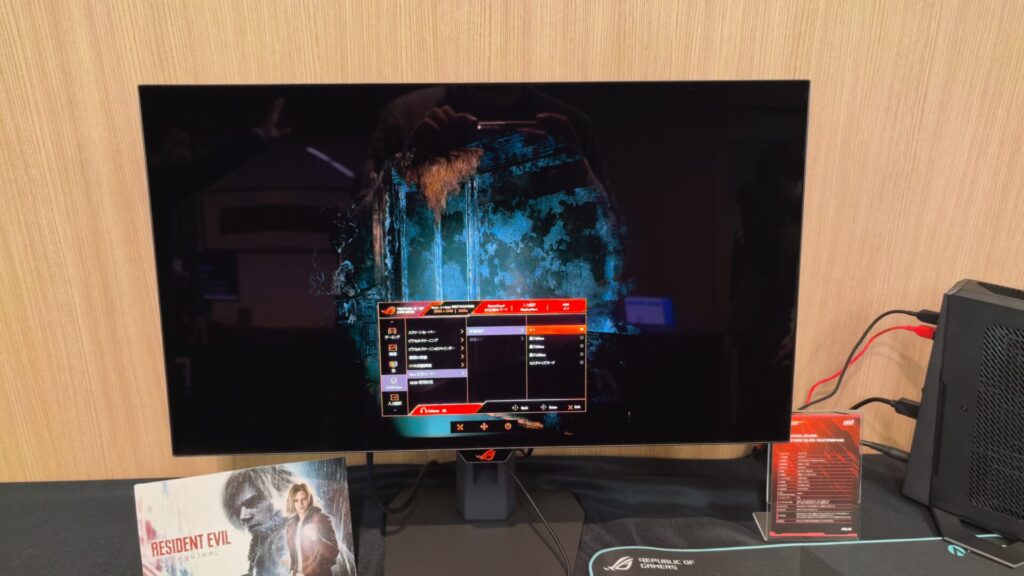 発売済みではありますが、ROG Swift OLED PG27AQWP-Wも展示されていました。