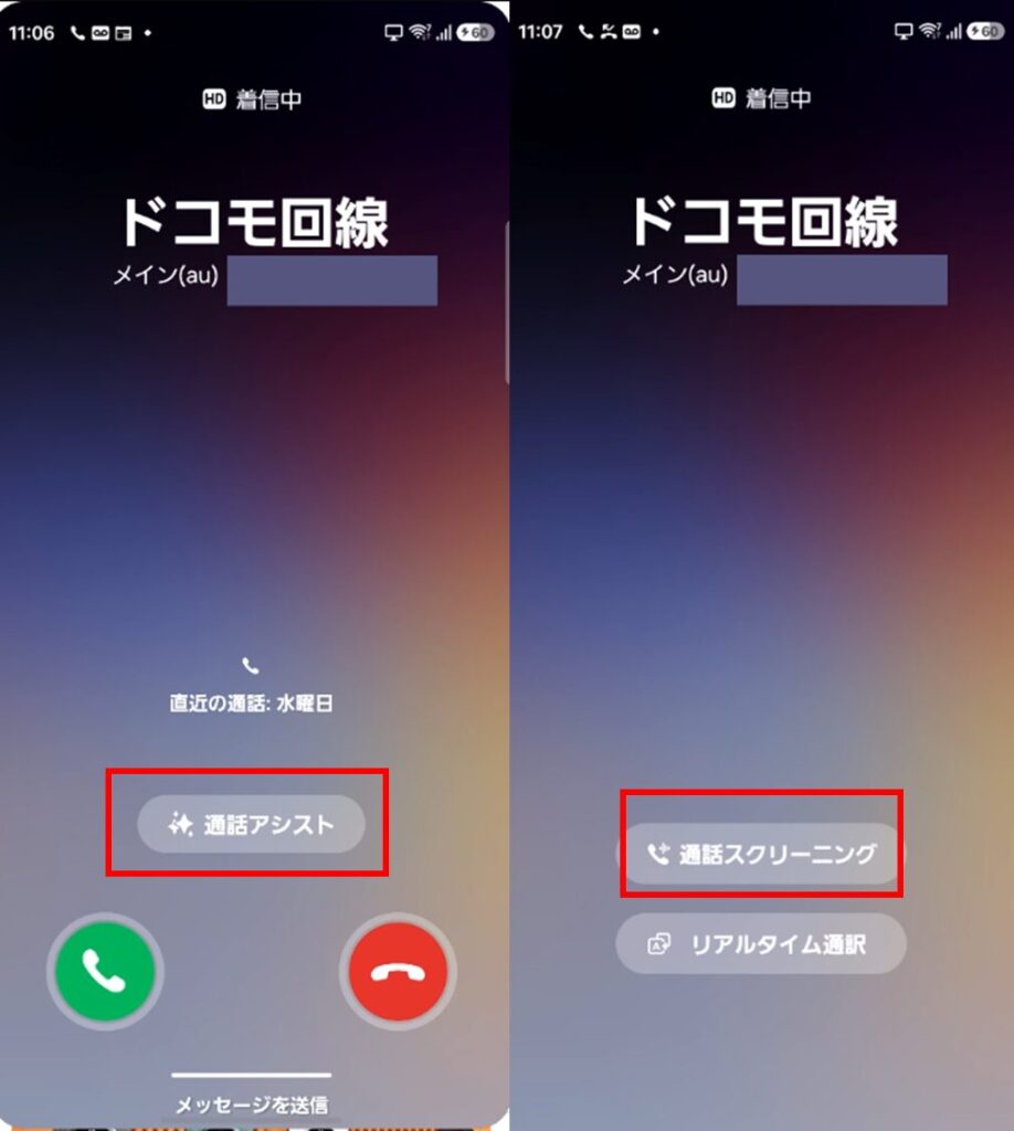 通話スクリーニングや通話録音は、Galaxyの通話アプリのみ