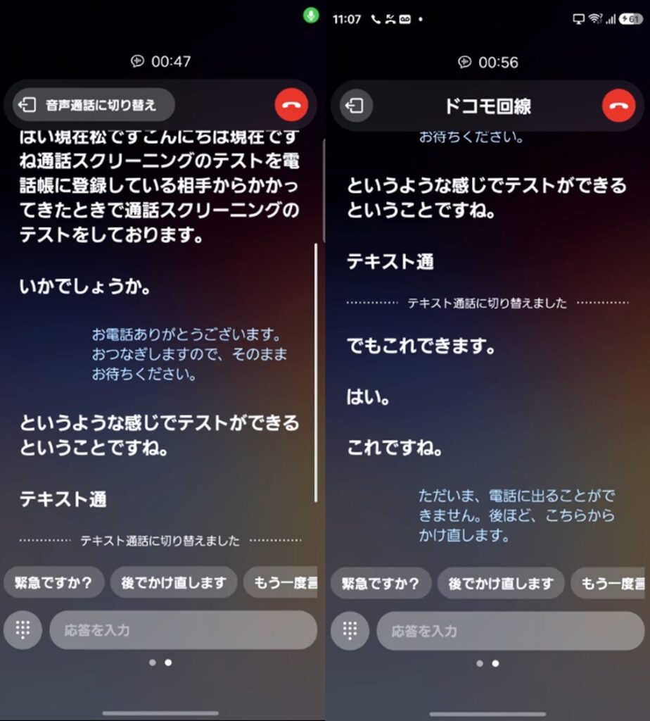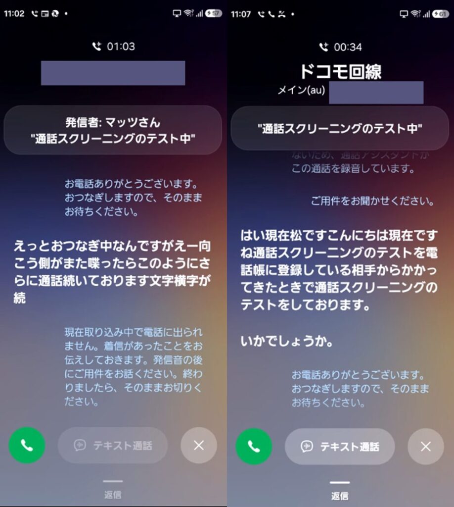 私の持っている別の番号から、通話スクリーニングでかけてみた様子を動画で紹介しています。