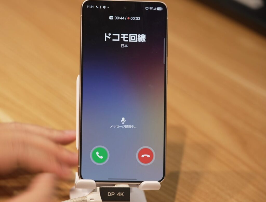 緑色の受話器を押せば、スクリーニングの最中でも電話に出ることができます。