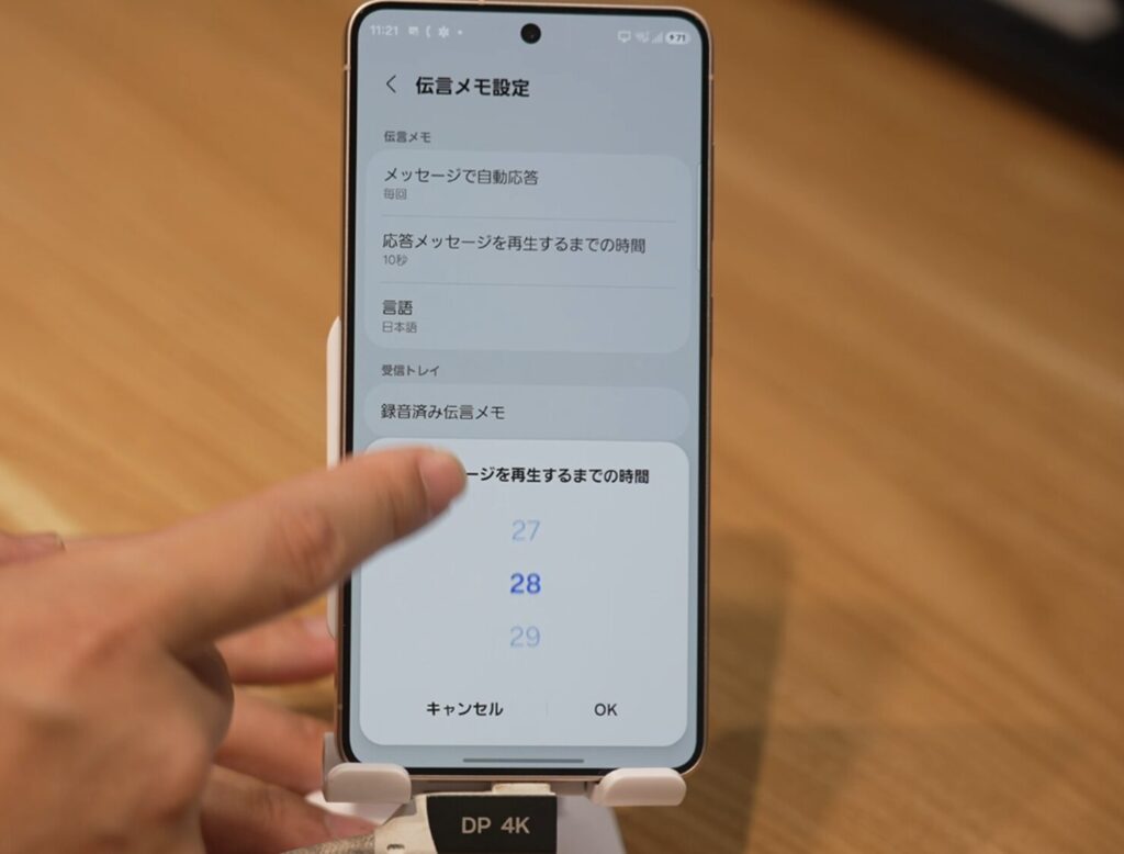 できれば、伝言メモの応答までの時間を40秒などと長めにしておいて、早めに通話スクリーニングに手で切り替える方がいいのかもしれません。