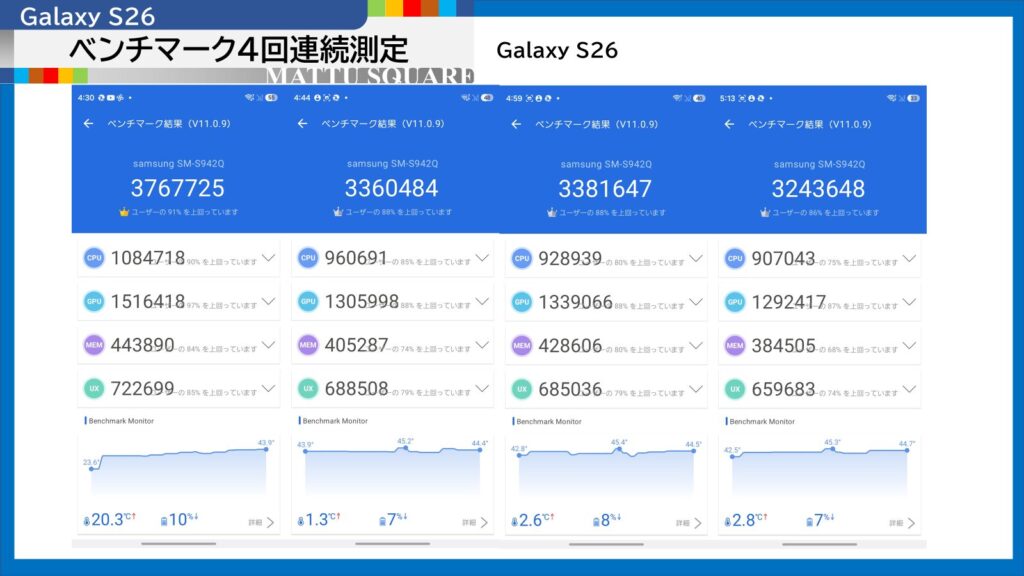 とはいっても、Galaxy S26は頭一つ抜けた優秀な数値をたたき出しています。