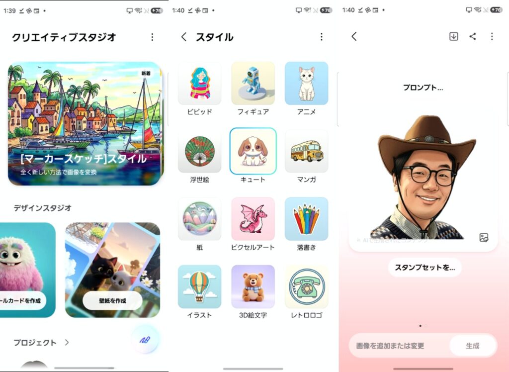 Galaxy AIでは、フォトアシストでの画像編集や、スタンプ生成などのクリエイティブスタジオが進化。
