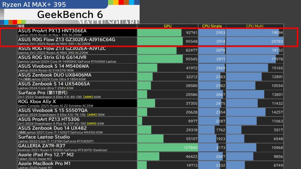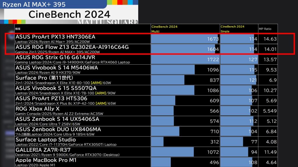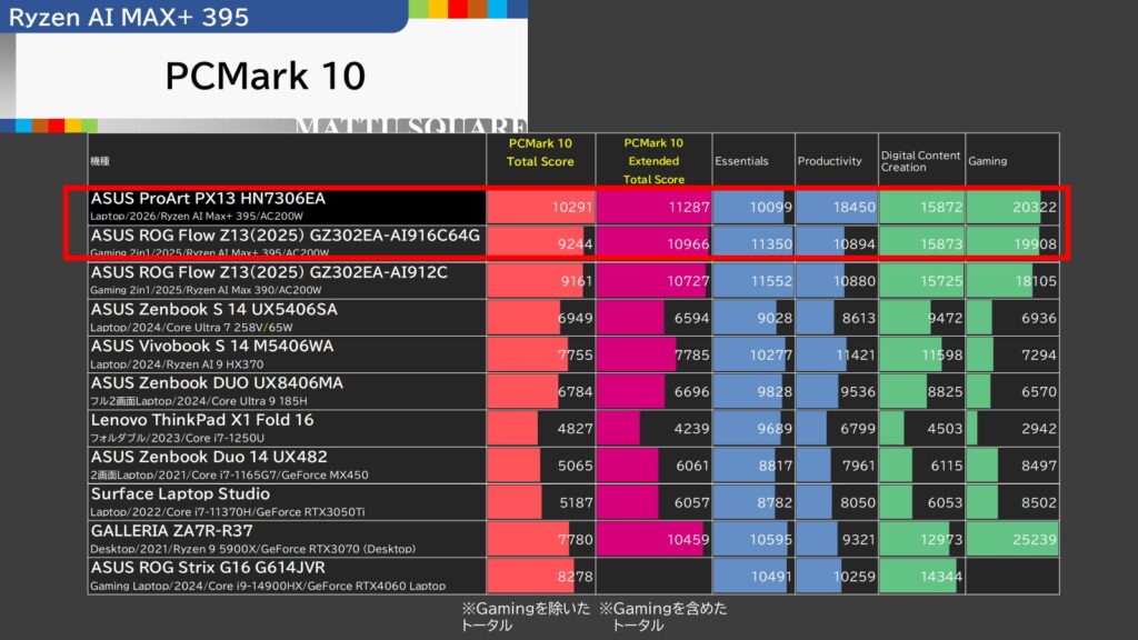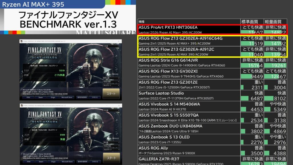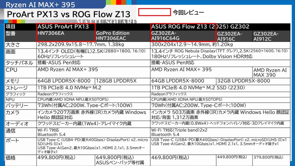ProArt PX13、ROG Flow Z13、XG Mobile2機種の、4機種を横断比較してみました!