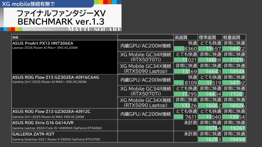 • XG Mobile (RTX 5070 Ti): ほとんど変化なし