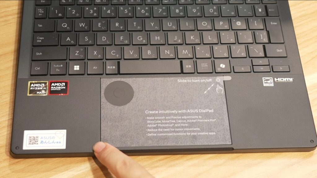 特筆すべきは、タッチパッド右上にダイヤル機能が備わっていることです。