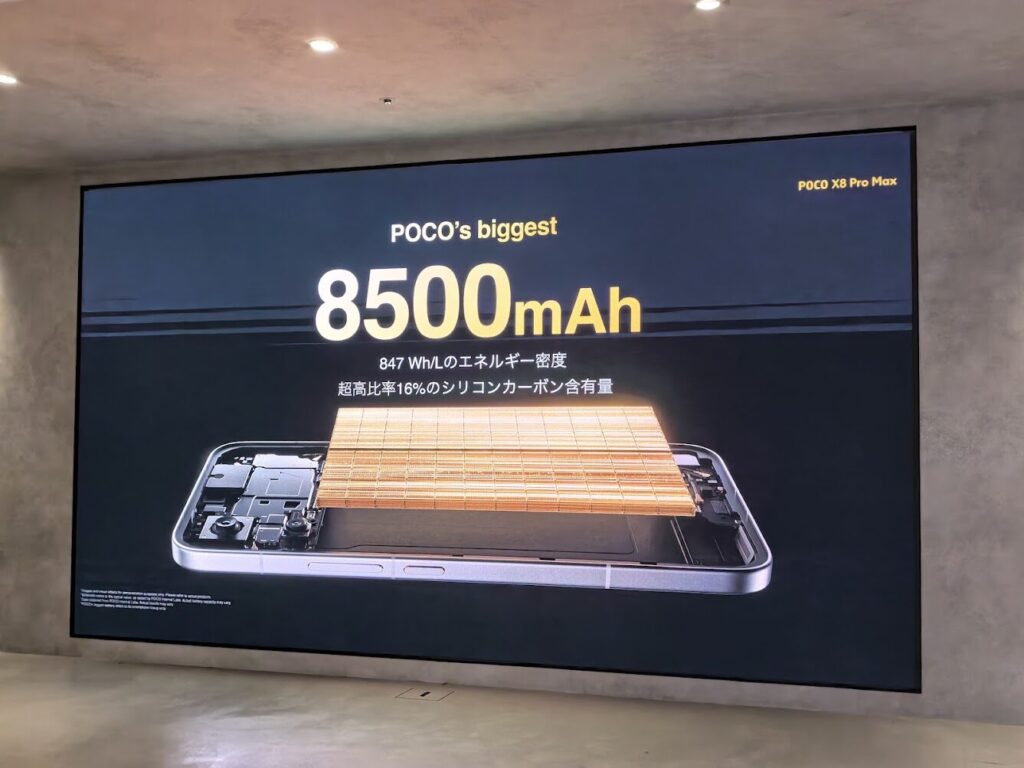 POCO X8 Proの6500mAhバッテリーも十分大容量ですが、POCO X8 Pro Maxは8000mAh級というタブレット並みのバッテリーを搭載。