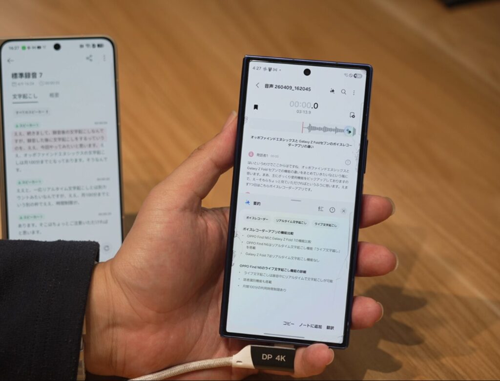OPPO Find N6は、リアルタイム文字起こしが可能です。