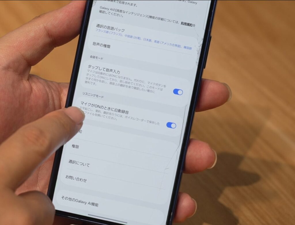 Galaxyの通訳アプリ設定にある「マイクがONのときに自動録音」