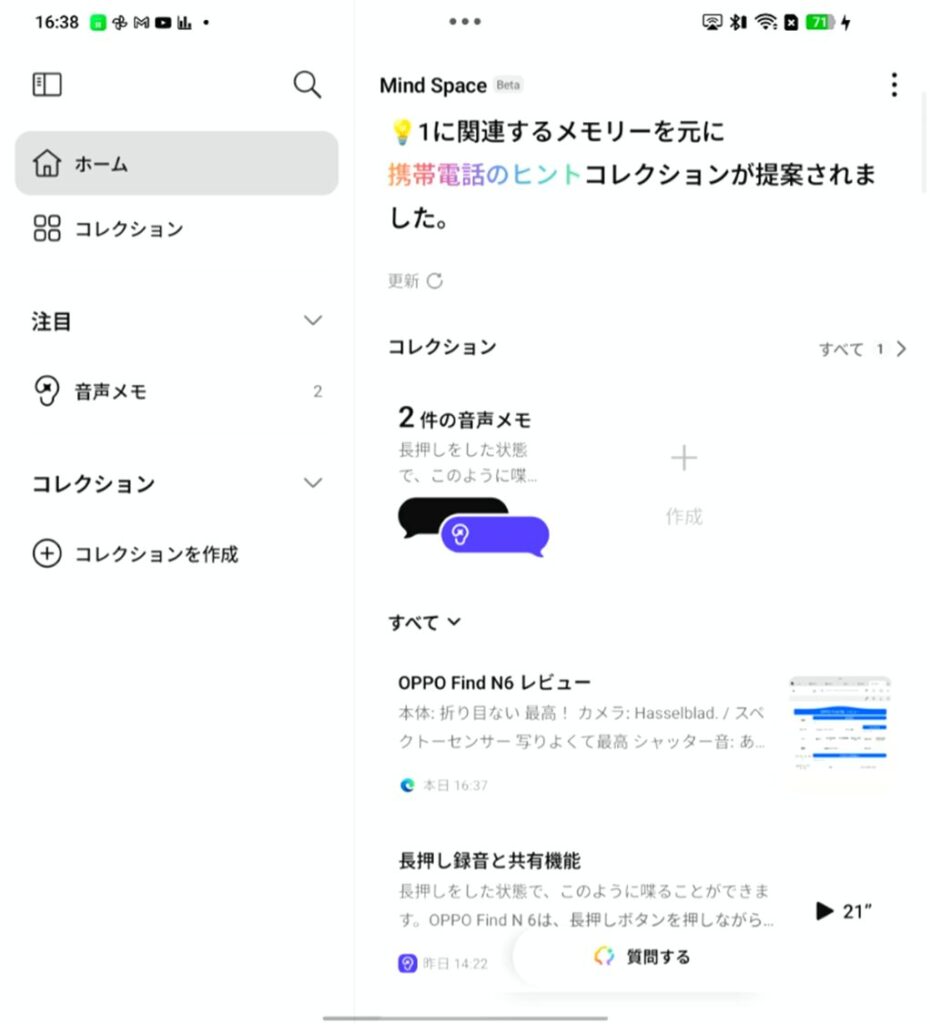 OPPO Find N6のみに搭載されているのが「AIマインドスペース」です。