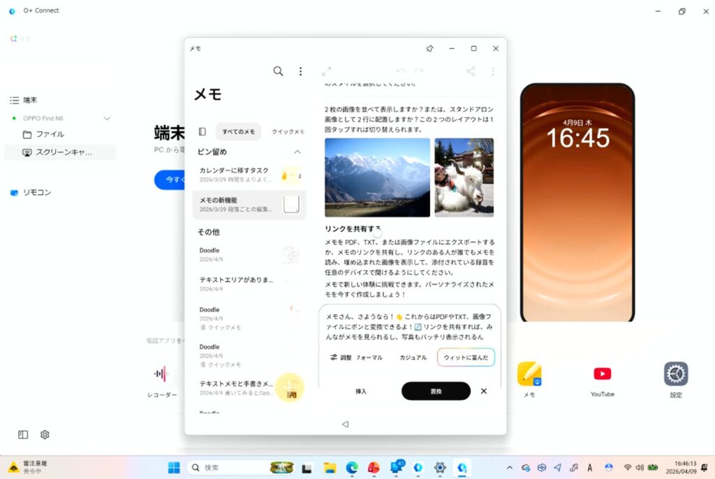 OPPO AI Penを使ったメイン画面の大画面にメモができるのは、非常に便利です。