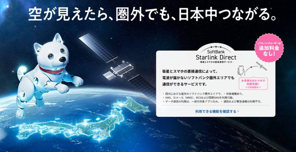 一方で、SoftBank Starlink Directが2026年4月10日から提供開始され、ソフトバンク・ワイモバイルの方は申し込み不要・追加料金可能で、ソフトバンク回線が圏外だが空が見えるところではStarlinkの衛星で利用することが可能んあります。
